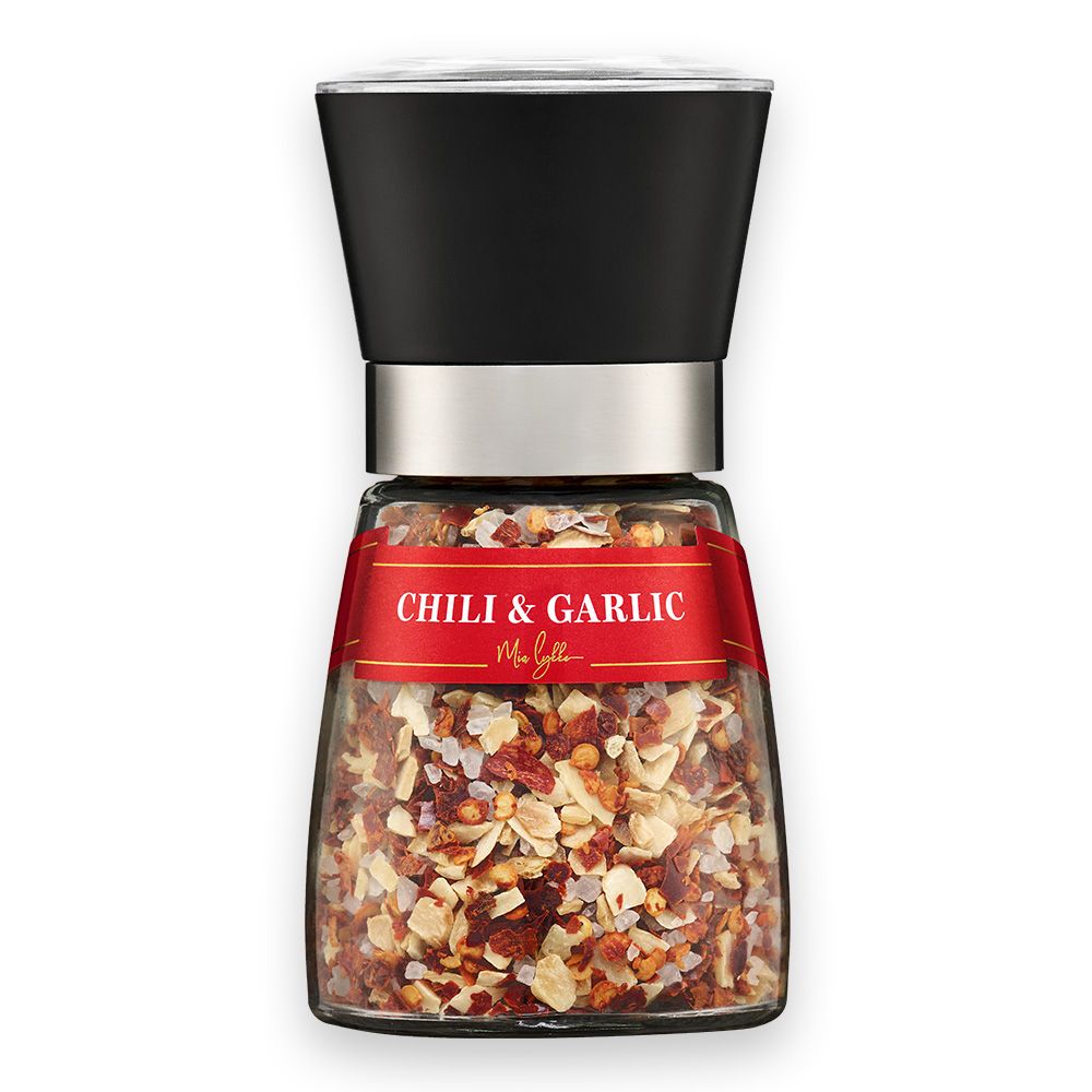 Denne uundværlige krydderiblanding kan bruges til at krydre alt fra kød og fisk til grøntsager og pasta, og dens alsidighed gør den til det perfekte værktøj til at udforske nye kulinariske horisonter i dit køkken. Og hvis du vil have en ekstra smagsoplevelse, kan du blot dreje på kværnen og drysse lidt ekstra Chili & Garlic på toppen af din færdige ret for at tilføje et sidste strejf af intensitet og aroma.