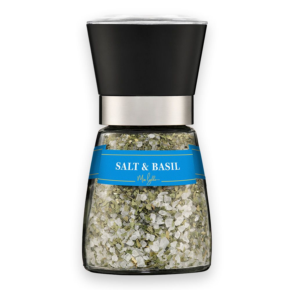 Mia Lykke kryddderikværn med salt og basilikum har en god balance mellem saltet dybde og basilikumens friskhed. Krydderiblandingen er ikke bare en tilføjelse til din madlavning, men er også en genvej til at tilføje smag og aroma til enhver ret.