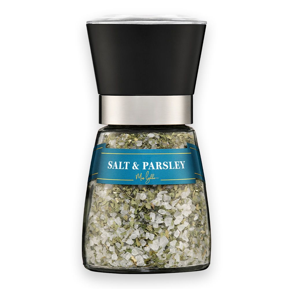 Mia Lykke Salt & Parsley kommer i en praktisk kværn, hvor du med et enkelt drej let kan dosere den perfekte mængde krydderi til din ret, hvilket gør det til en ideel ledsager til både madlavning og servering ved bordet. Kværnen stopper aldrig til, og den kan indstilles til, om den skal kværne krydderierne groft eller fint.