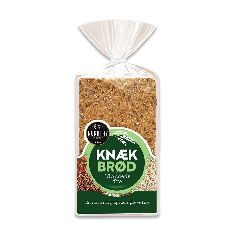 Nordthy Knækbrød med blandede frø er spækket med sesam, hørfrø og solsikkekerner. Kombinationen giver en fyldig og let ristet smag med et tilfredsstillende knæk. Det er et alsidigt knækbrød, som både kan bruges som morgenmåltid med smør eller som et mellemmåltid med avocado eller skinke.