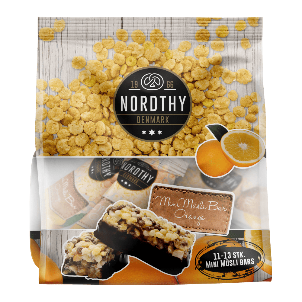 Nordthy Mini Müsli Bars Orange – En lækker mini müsli bar med en smag af appelsin.