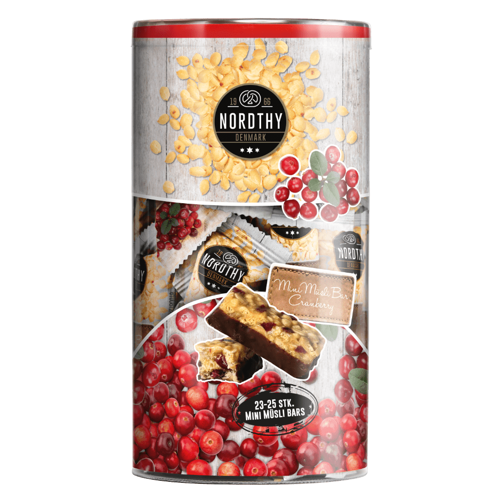 Nordthy Mini Müsli Bars Tranebær – En lækker mini müsli bar med en smag af tranebær.