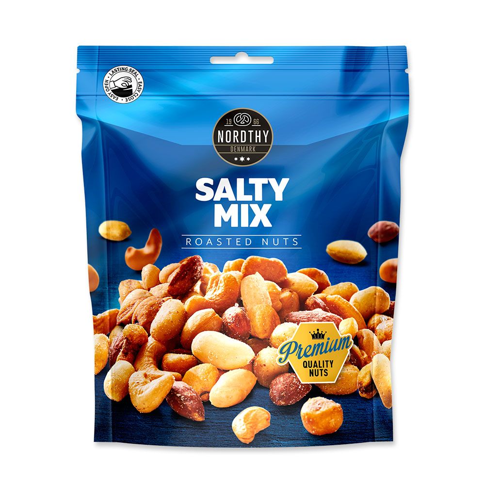 Nordthy Salty Mix er en lækker blanding af premium ristede nødder, der er let saltede for at fremhæve deres naturlige smag. Kombinationen af cashewnødder, mandler, majs og jordnødder giver en perfekt balance mellem knas og cremet tekstur. En klassisk snack, der passer til enhver lejlighed – perfekt til tapas og en hyggelig aften.