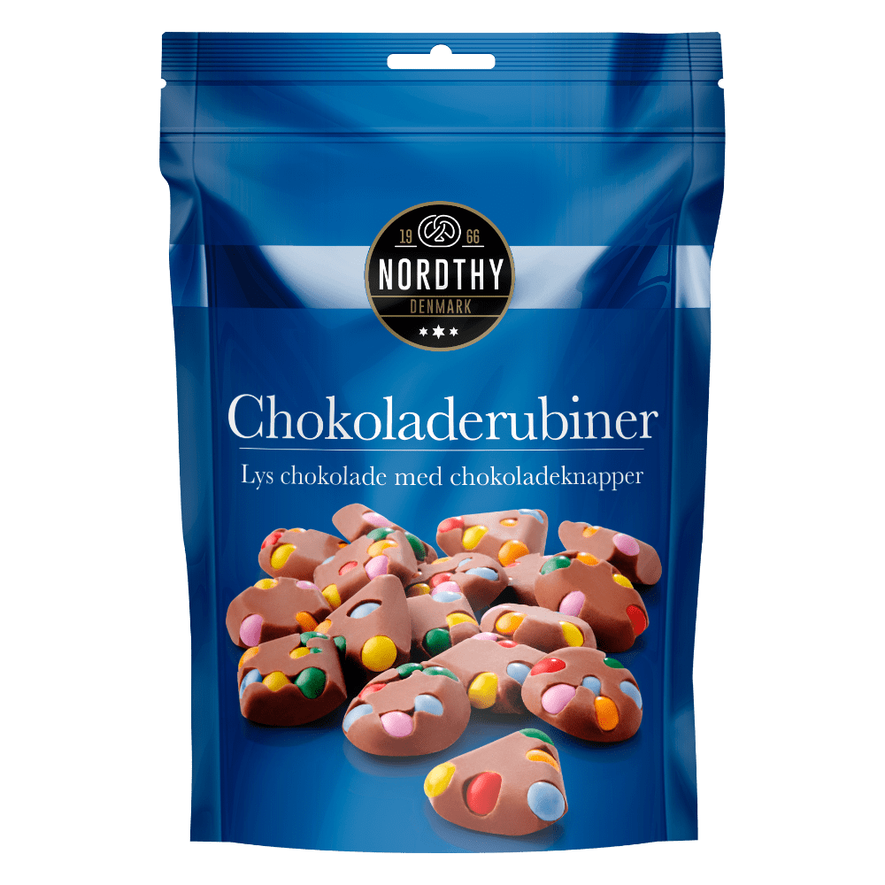 Nordthy Chokoladerubiner - Mælkechokolade med chokoladeknapper.