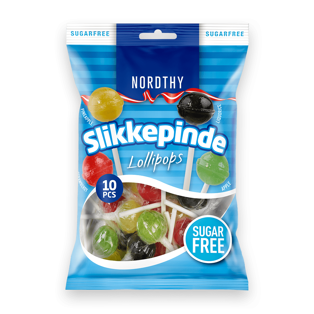 Nordthy Sukkerfrie Slikkepinde 4. var – Slikkepinde med lakrids, jordbær, æble og ananassmag.