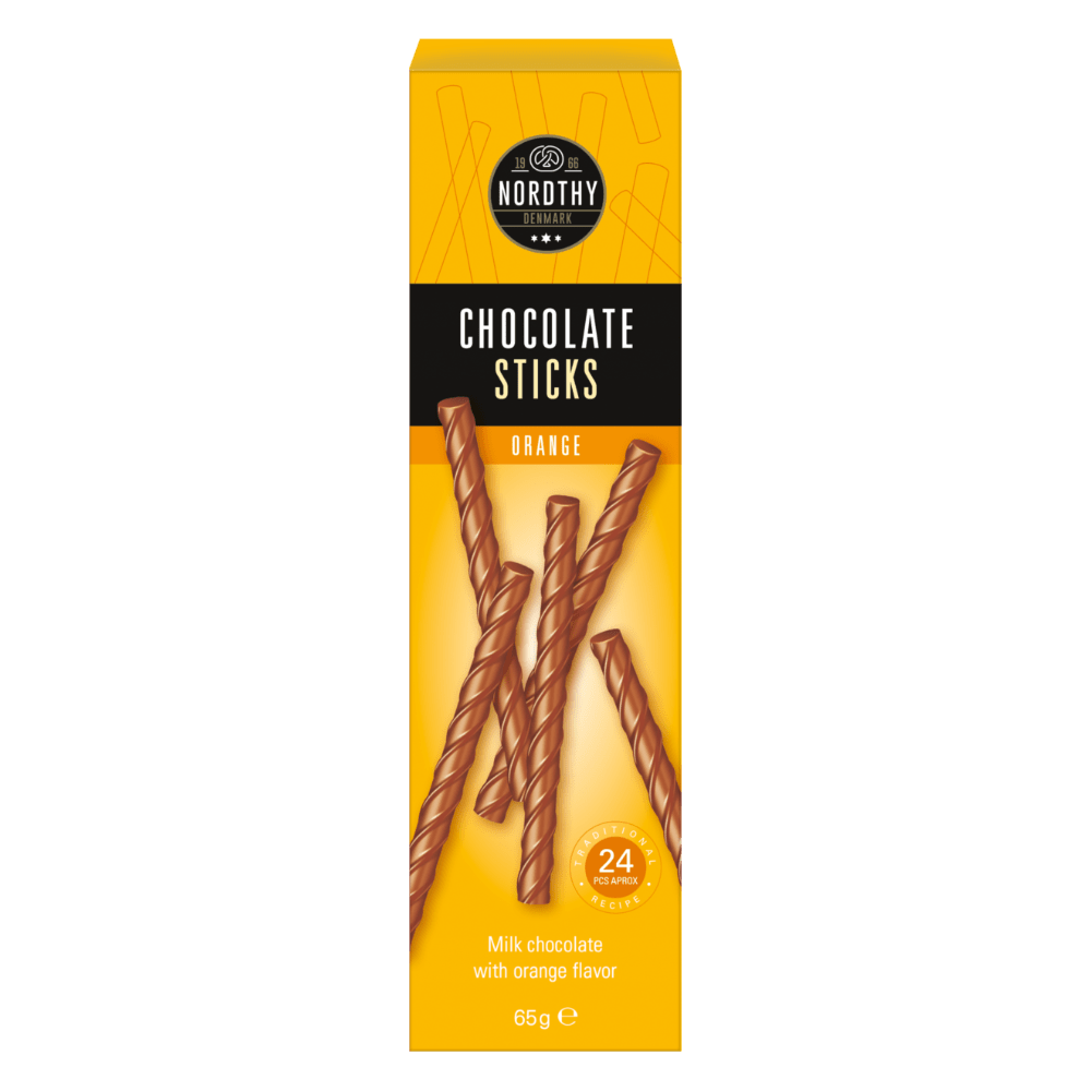 Nordthy Chokolade Sticks. Mælkechokolade med appelsinsmag.