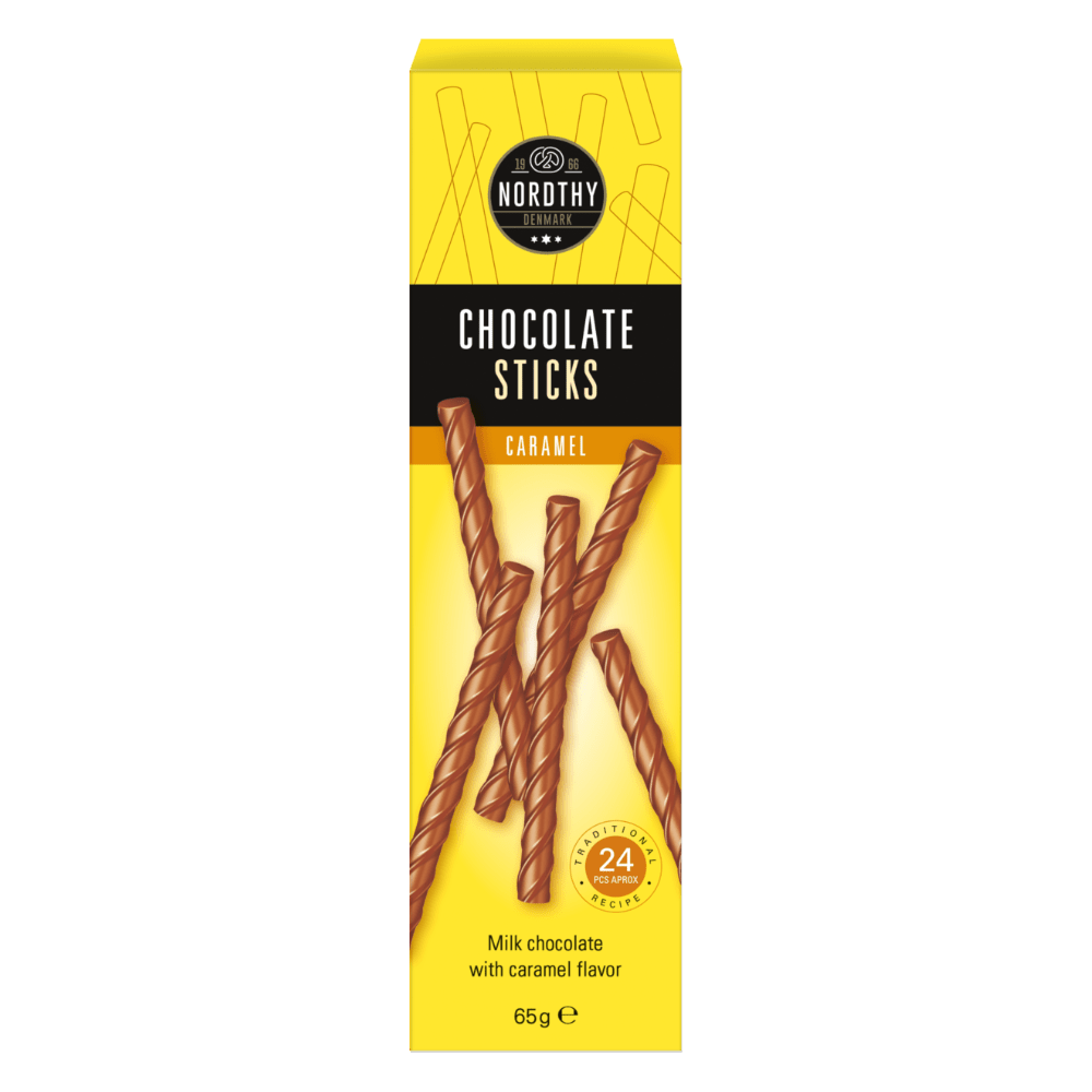 Nordthy Chokolade Sticks. Mælkechokolade med karamelsmag.