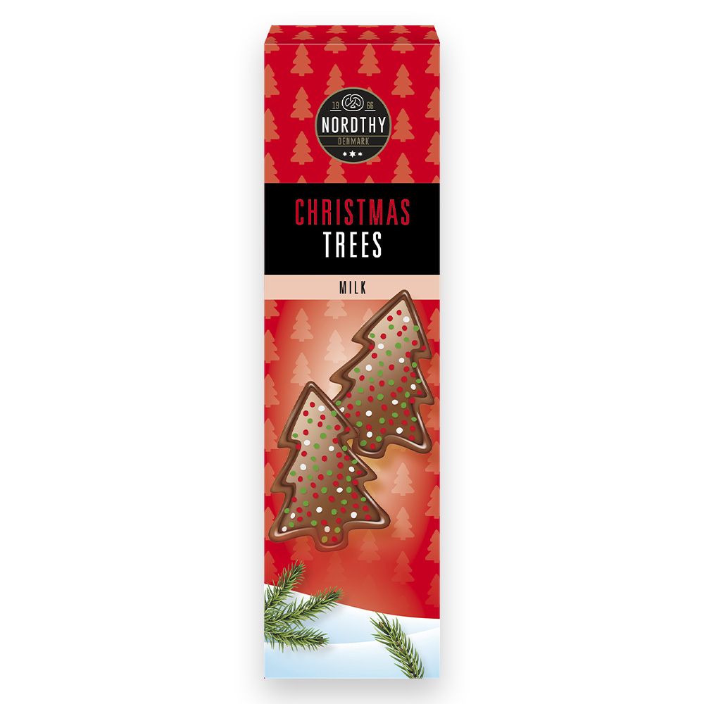 Nordthy Christmas Trees er lavet af mælkechokolade og er formet som små juletræer med lidt farvet krymmel på.