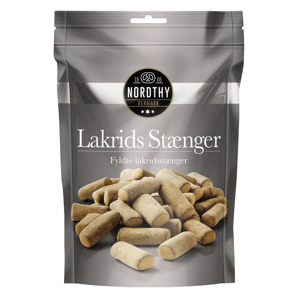 Nordthy Lakridsstænger. Lakrids med salmiakfyld og vendt i lakridspulver.