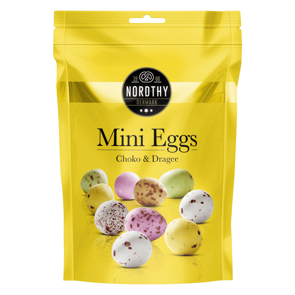 Nordthy mini eggs påskeæg, der er overtrukket med sukkerdragé og med skøn mælkechokolade, og er en fryd for øjet og ganen.