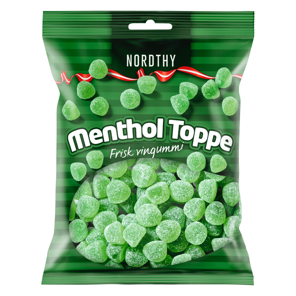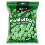 Nordthy Menthol Toppe er vingummi med en frisk smag af menthol, og drysset med sukker.