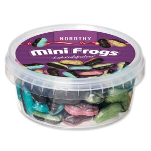 Ingredienser: Glukosesirup, sukker, vand, druesaft fra koncentrat (5%), grisegelatine, surhedsregulerende middel (E330), fortykningsmiddel (E440), plantekoncentrater (sort gulerod, saflor), karamelsirup, spirulinakoncentrat, naturlige aromaer, overfladebehandlingsmiddel (E903), kokosolie.