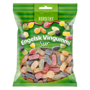 Ingredienser: Glukosesirup, sukker, grisegelatine, druejuice fra koncentrat (5%),