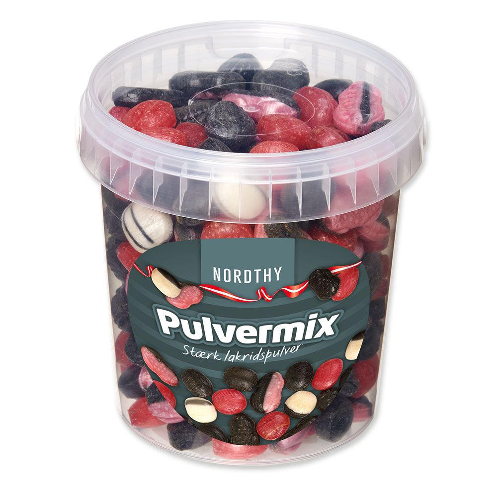 Nordthy Pulvermix består af hårde bolcher med en sød lakridsskal og en kerne af intenst lakridspulver. Kombinationen af det søde ydre og det stærke indre giver en markant lakridssmag i hver bolche. En sammensætning, der henvender sig til dem, der sætter pris på kontrasten mellem sødme og styrke.